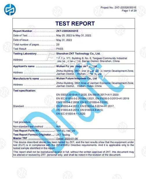 중국 Wuhan Future Intepower Co., Ltd. 인증서